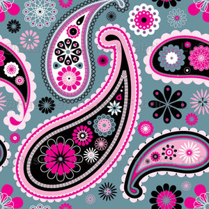 Paisley Parque Collection - Magenta, Black, White, Slate Blue Grey