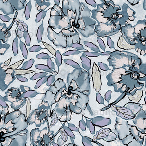 Pale blue and gray muted African Violet on a light blue background designed by V. Campos-Hallstrom, Club Creative Art.