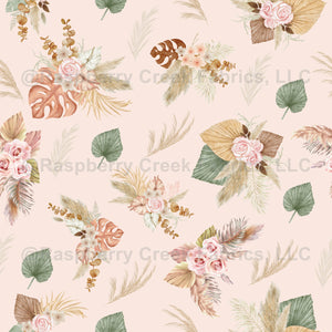 Pampas Grass & Flowers on Cream