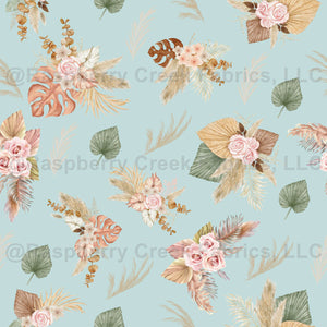 Pampas Grass & Flowers on Light Blue - small