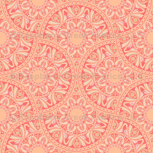 Mirrored vibes in our abstract floral parfait dot mandala non-directional scallop pattern using colours from the Peach Plethora Pantone color palette.
