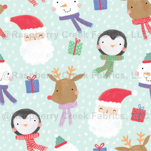 Say Merry Christmas with this super cute design featuring Santa Penguin Rudolph and Snowman faces! for baby & children clothing, blankets, nursery