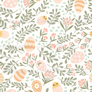 Pastel Easter Eggs - Floral Spring Pattern with Cute Chicks