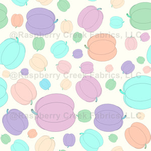 Pastel colored pumpkins on a soft yellow background. A fun fall design in unconventional colors.