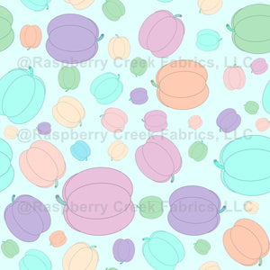 Pastel colored pumpkins on a soft blue background. A fun fall design in unconventional colors.
