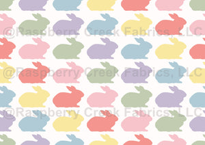 Pastel Rainbow Bunnies on Cream Pink Blue Green Yellow Coral, Springtime Collection