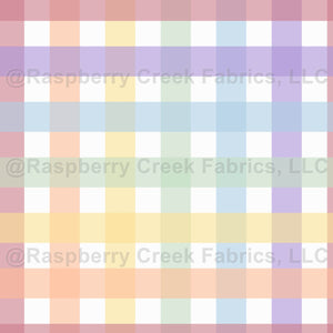 Large scale gingham plaid in pastel rainbow colors on bright white, perfect for classic dopamine designs in home decor, wallpaper, and apparel.