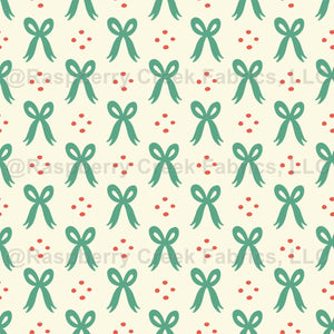 Patina Green Holiday Bows {on Ivory / Off White / Cream} Bright Christmas Ribbons with Red Polka Dots // Christmas Joy
