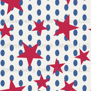 Patriotic Celebration Red Stars on Blue Dots, cream/white background