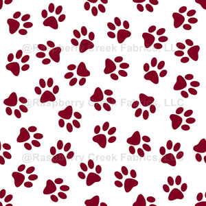 Cute, fun and adorable pattern with burgundy paws on white background. Modern and trendy design, perfect for the dog and lover.