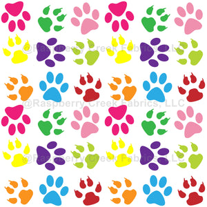 Cute, fun and adorable pattern with colorful paws on white background. Modern and trendy design, perfect for the dog and cat lovers.