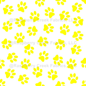 Cute, fun and adorable pattern with yellow paws on white background. Modern and trendy design, perfect for the dog and lover.