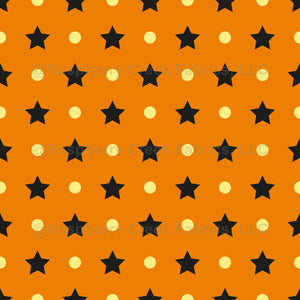 Elegant, stylish and sophisticated pattern with stars and dots in black and yellow color on orange background. Modern and trendy gift, perfect for the stars lover in your life.