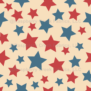 Elegant, stylish and sophisticated pattern with stars in red and blue color on cream background. Modern and trendy gift, perfect for the stars and 4th of July lover in your life.