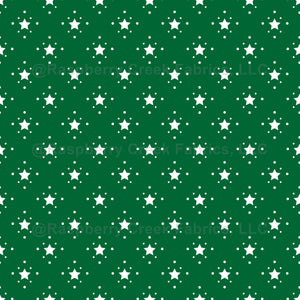 Elegant, stylish and sophisticated pattern with stars and dots in white color on green background. Modern and trendy gift, perfect for the stars lover in your life.