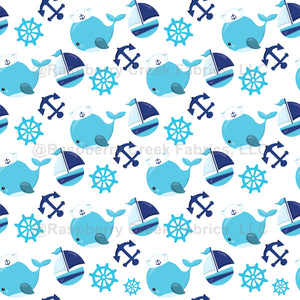 Cute, fun and adorable pattern with blue whales, sailing boats and anchors. Modern and trendy gift, perfect for the whale lover in your life.