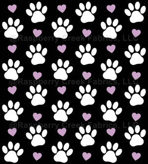 Paw Pattern, Dog Paws, White Paws, Lilac Hearts