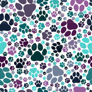 Fun paw print design in shades of purple, plum, turquoise, & lavender. Good for dog or cat lovers/parents/owners/servants. Upon first glance, pattern looks like flowers.