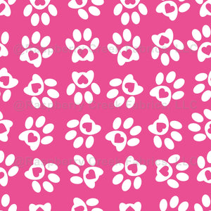 Paws Pattern, Dog Paws, Cat Paws, White Paws With Hearts on Pink Background