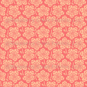 Peach tree flowers with small leaves. Modern elegant, cozy, warm neutral Peach Fuzz and red colored design with an asian and vintage feeling.