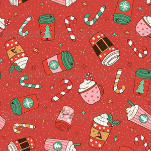 Peppermint Mocha Christmas Coffee and Candy Canes on Retro Red