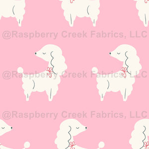 Pretty in pink pet poodles with bows, feminine and retro styles dogs.
