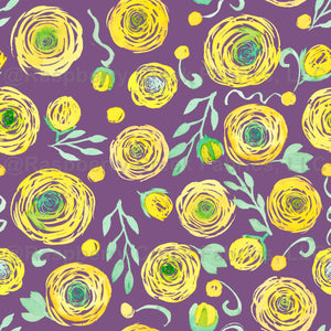 Petal Prism - Ranunculus Spring - purple- Spring 2025 collection - yellow Watercolor florals on pansy purple background