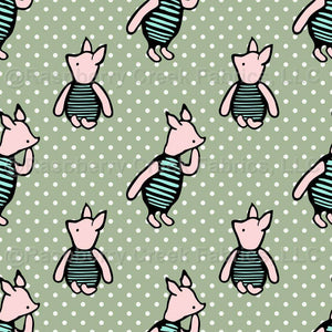 Piglet on Soft Sage Green Pooh and Friends