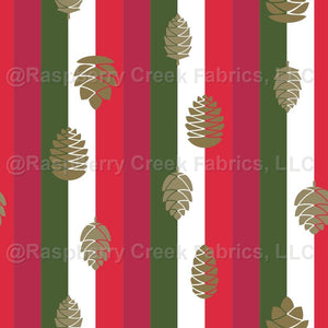 Pine Cone Stripes. Part of the Christmas collection. Reds, green and browns. Mix and match with other parts of the Trekatte Christmas 2023 collection.