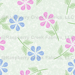 Pink and Blue Paisley Daisies on Pale Sage Texture