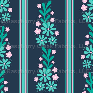Pink and Mint Dainty Flowers and Stripes on Navy