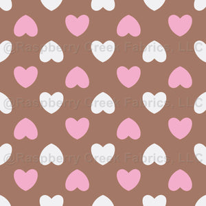 Pantone 2025 color of the year mocha mousse with pink and white valentines hearts.
