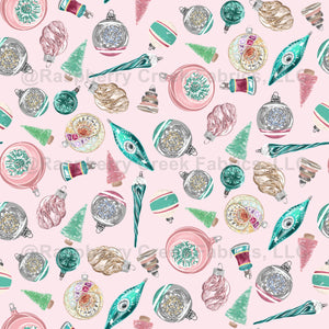 Pink, light pink, Christmas, retro, vintage, ornaments, turquoise, scattered, girls, women, home, shiny bright