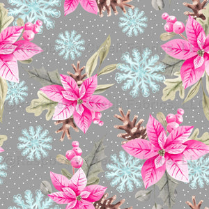 Pink Poinsettia and Winter Snowflakes on Taupe