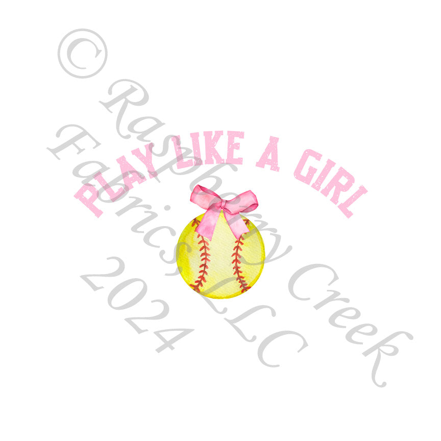 Pink Red and Bright Yellow Play Like a Girl Softball Panel, Ball Game by Bri Powell for CLUB Fabrics