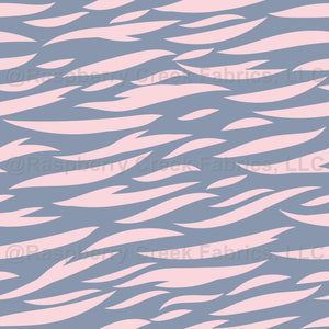 Pink tiger stripes, against a soft blue background.
