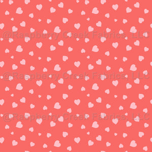 Pink love hearts on a rust orange background. Great for little girls clothing, Valentine's projects and quilting.