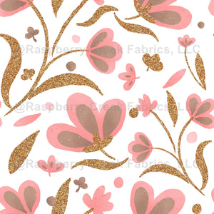 Pink, white and copper floral wallpaper