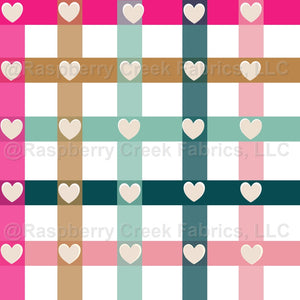For My Love x Pink Yellow Green Hearts Imperfect Check on White