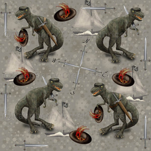 Pirate T-rexes create a fun design for those into fantasy and dinosaurs.