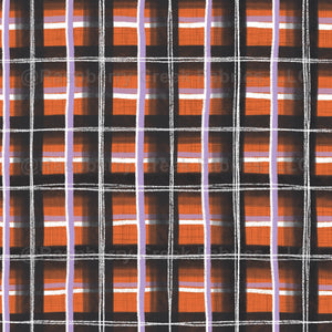 Plaid, hand drawn, cream, orange, black, white, purple, textured, girls, women, fall, halloween, pumpkin patch plaid