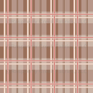 A classic plaid pattern featuring white, red and brown stripes on brown background. Perfect for holiday decor, textiles and seasonal projects.