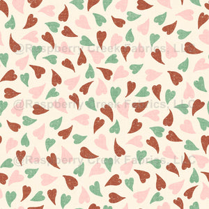 Three-color chalk hearts scattered in a lively medium ditsy layout, adding playful charm to any creative project.
