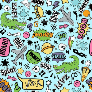 Playful Comic Bubble Doodles on Blue