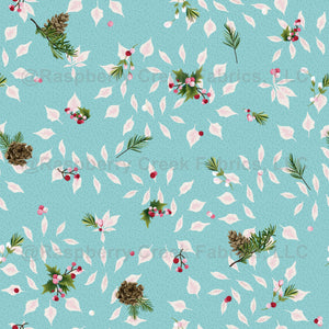 Poinsettia Petals and Greenery on blue- Holiday greenery- festive woodland