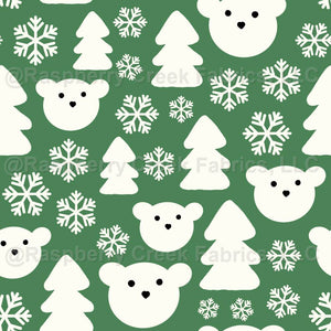 Polar Bear Snowy Forest in Pine Green