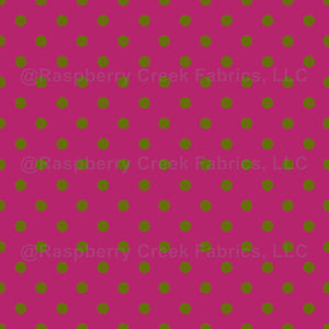 Classic polkadots in light olive green on a dark pink/fuchsia background. Christmas, Holiday, medium scale. Blender/Coordinate for the Holiday Ditsy Poinsettia Collection. Fabric, Home Decor