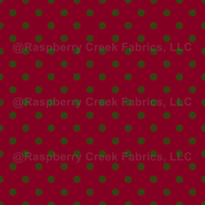 Classic polkadots in olive green on a red background. Valentines, Holiday, medium scale. Blender/Coordinate for the Holiday Ditsy Poinsettia Collection. Fabric, Home Decor