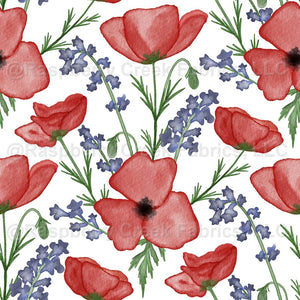 Poppies & Freedom - Watercolor Poppies & Lavender Garden - Patriotic Wildflower Floral