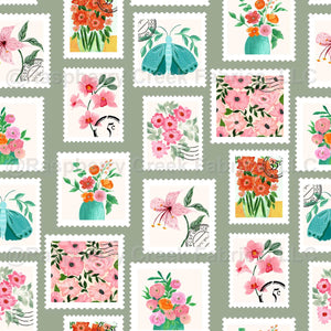 Postage with Flowers Butterflies Flower Vases Fine Art - Light Green